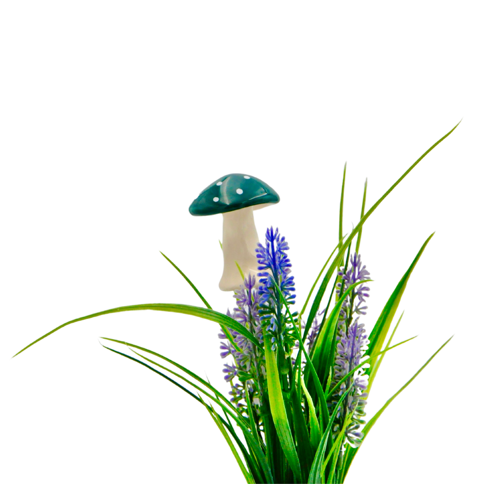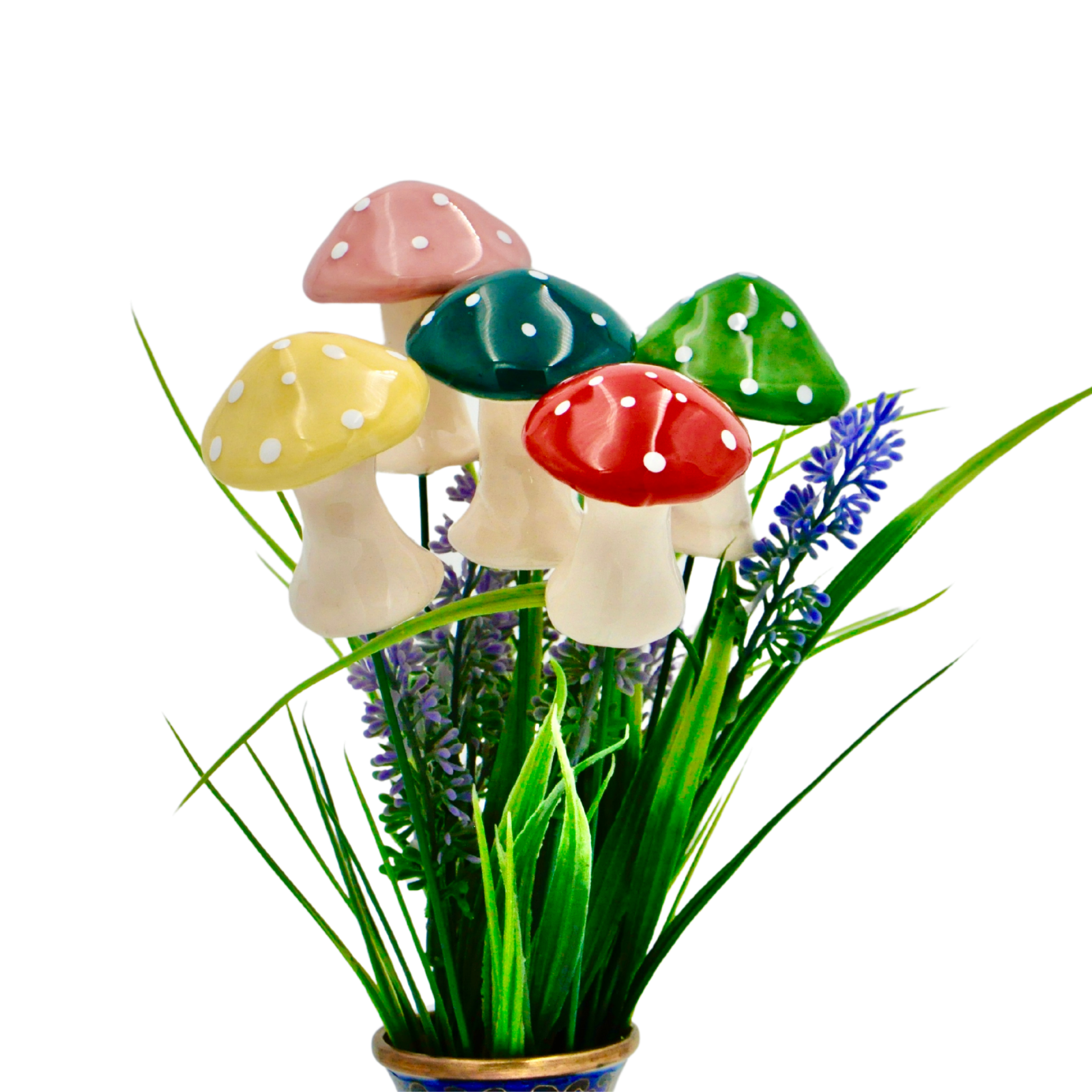 Aceasta este Ciuperca noastră formată din ceramică și este o operă de artă unică, modelată manual cu atenție, prezentând mici diferențe ce subliniază autenticitatea din această cauză nici o ciupercă nu este la fel ca cealaltă. Cu culori vibrante, glazură ecologică strălucitoare și un fir metalic flexibil, această ciupercă delicată emite eleganță, dar datorită elementelor ascutite, nu este potrivită pentru copii sub 3 ani.