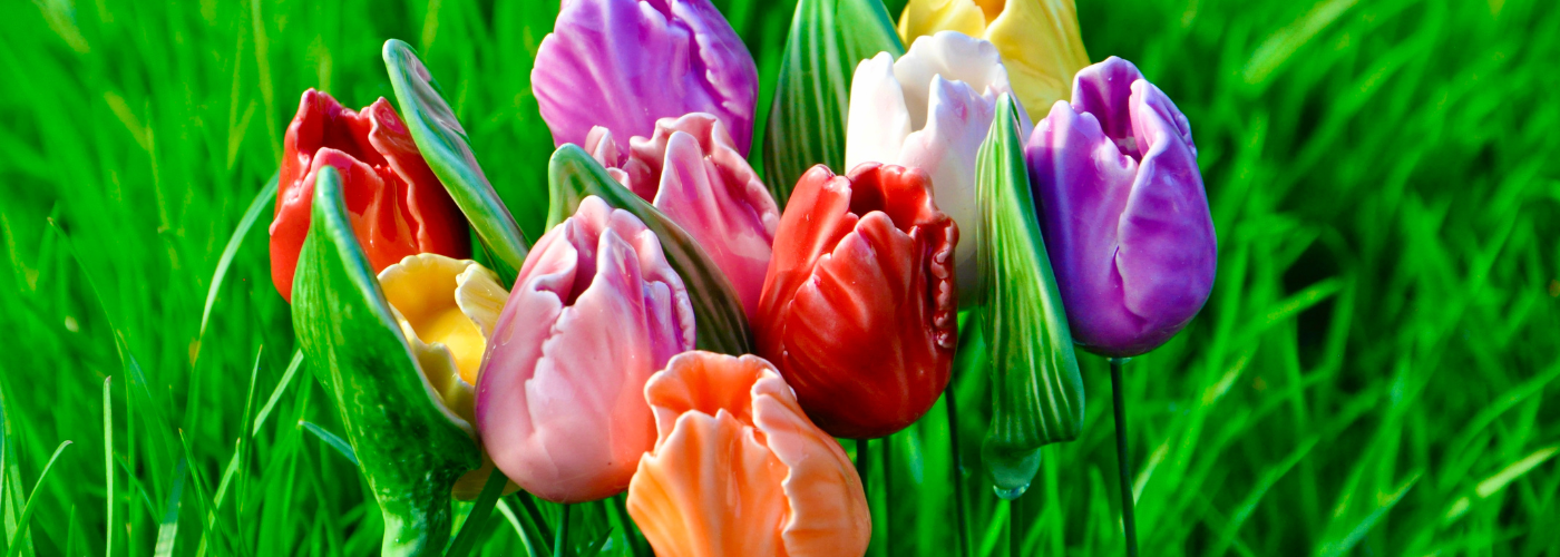 Aceasta este Frunza de Lalea a noastră formată din ceramică și este o operă de artă unică, modelată manual cu atenție, prezentând mici diferențe ce subliniază autenticitatea din această cauză nici o frunză nu este la fel ca cealaltă. Cu culori vibrante, glazură ecologică strălucitoare și un fir metalic flexibil, această frunză delicată emite eleganță, dar datorită elementelor ascutite, nu este potrivită pentru copii sub 3 ani.
