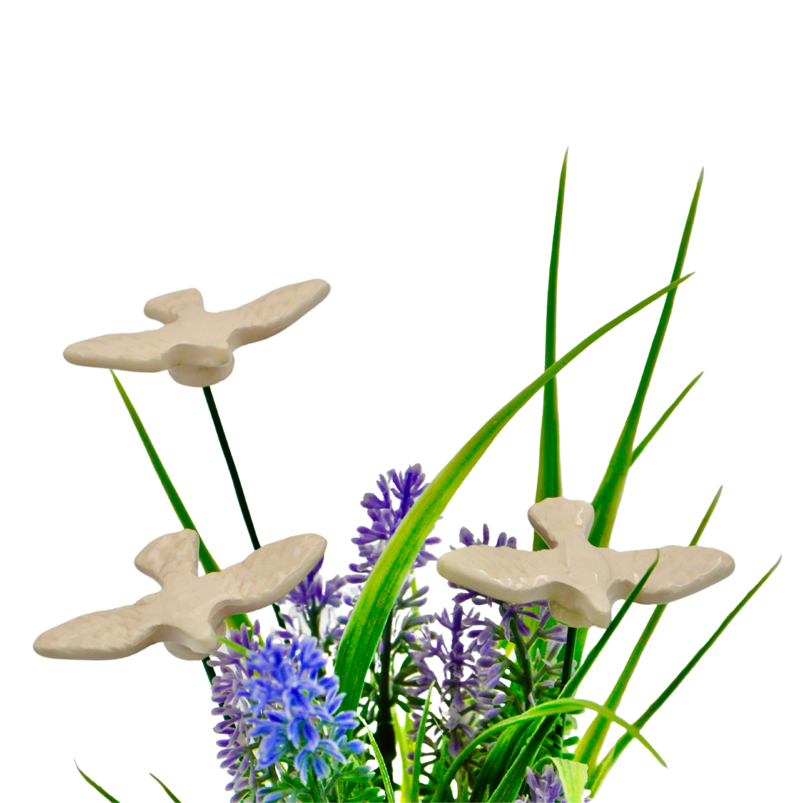 Acesta este Porumbelul nostru format din ceramică și este o operă de artă unică, modelată manual cu atenție, prezentând mici diferențe ce subliniază autenticitatea din această cauză nici un porumbel nu este la fel ca celălalt. Cu culori vibrante, glazură ecologică strălucitoare și un fir metalic flexibil, acest porumbel delicat emite eleganță, dar datorită elementelor ascutite, nu este potrivit pentru copii sub 3 ani.
