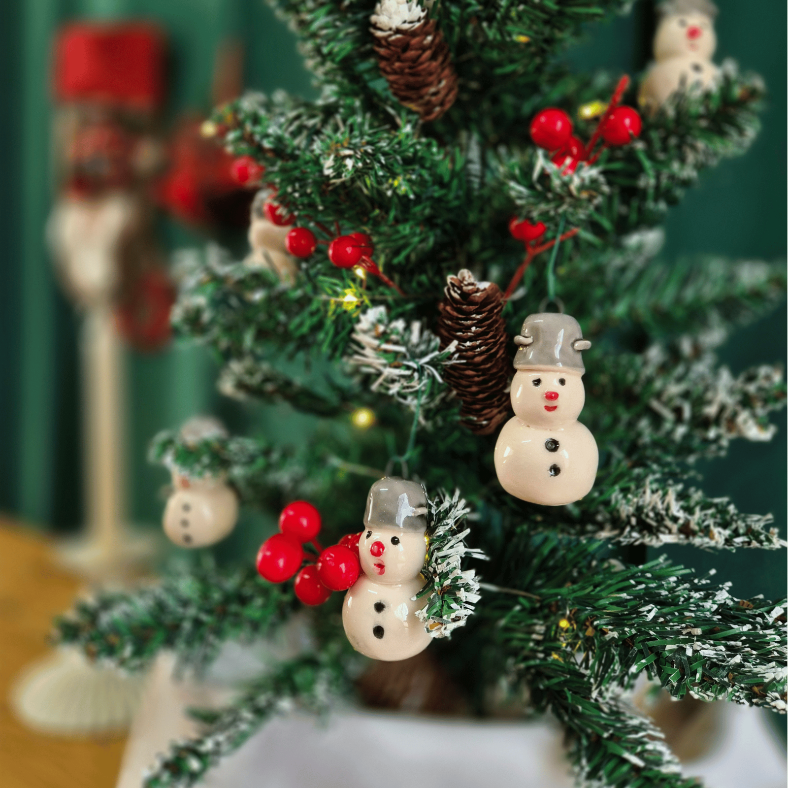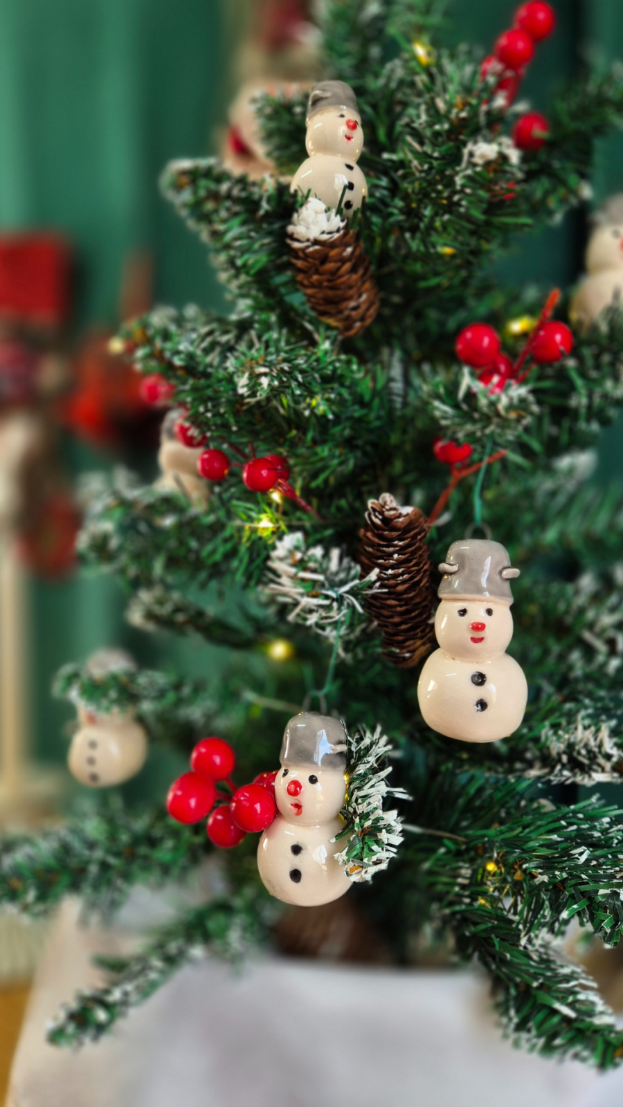 Acesta este omul nostru de zăpadă format din ceramică și este o operă de artă unică, modelat manual cu atenție, prezentând mici diferențe ce subliniază autenticitatea din această cauză nici un spiriduș nu este la fel ca celalalt. Cu culori vibrante, glazură ecologică strălucitoare și un fir metalic flexibil, aceast om de zăpadă delicat emite eleganță, dar datorită elementelor ascutite, nu este potrivit pentru copii sub 3 ani.