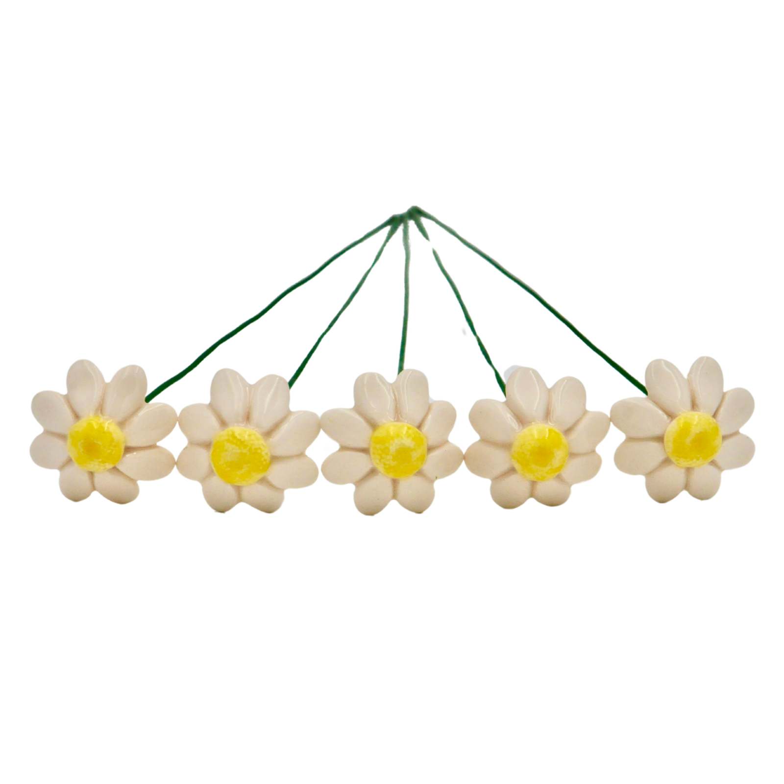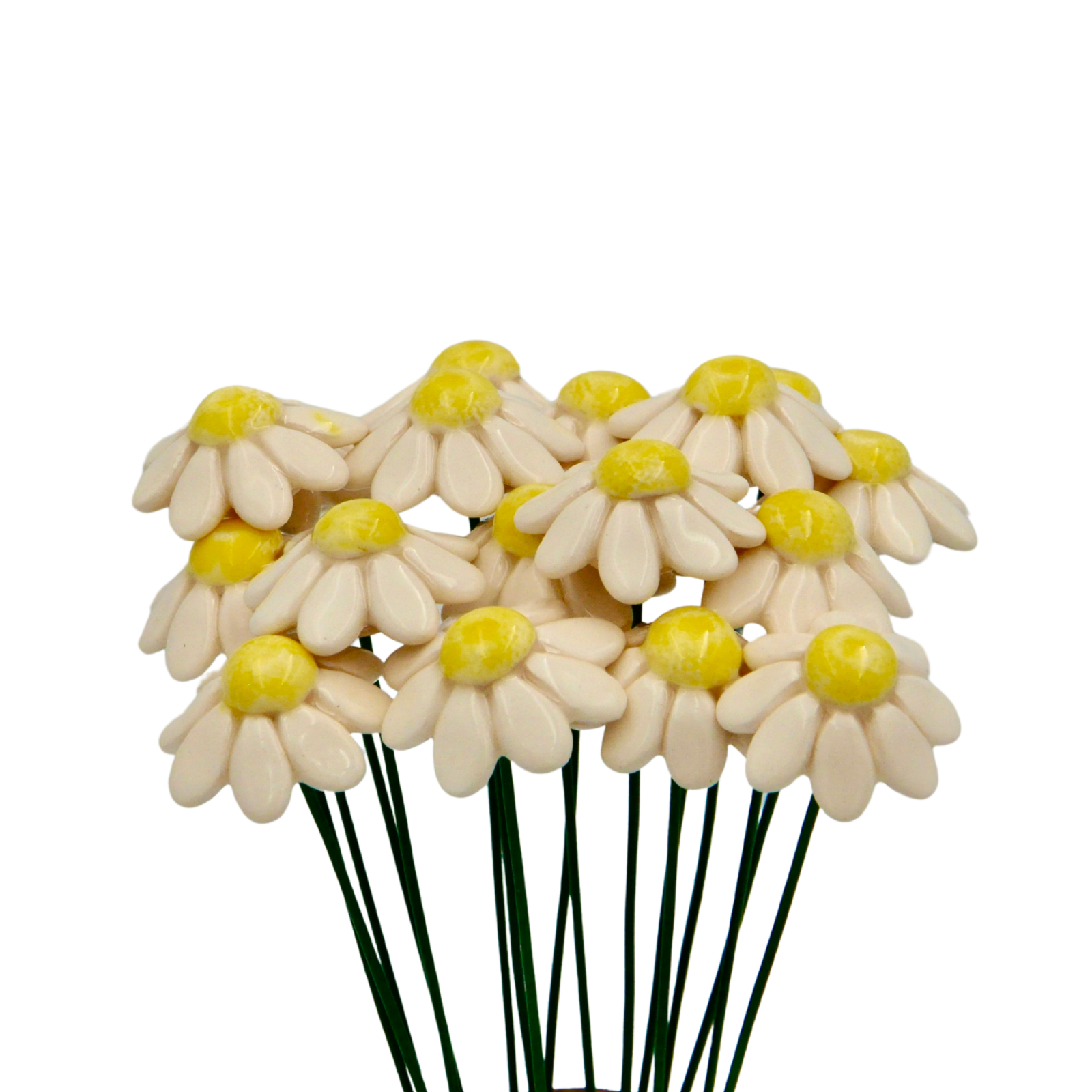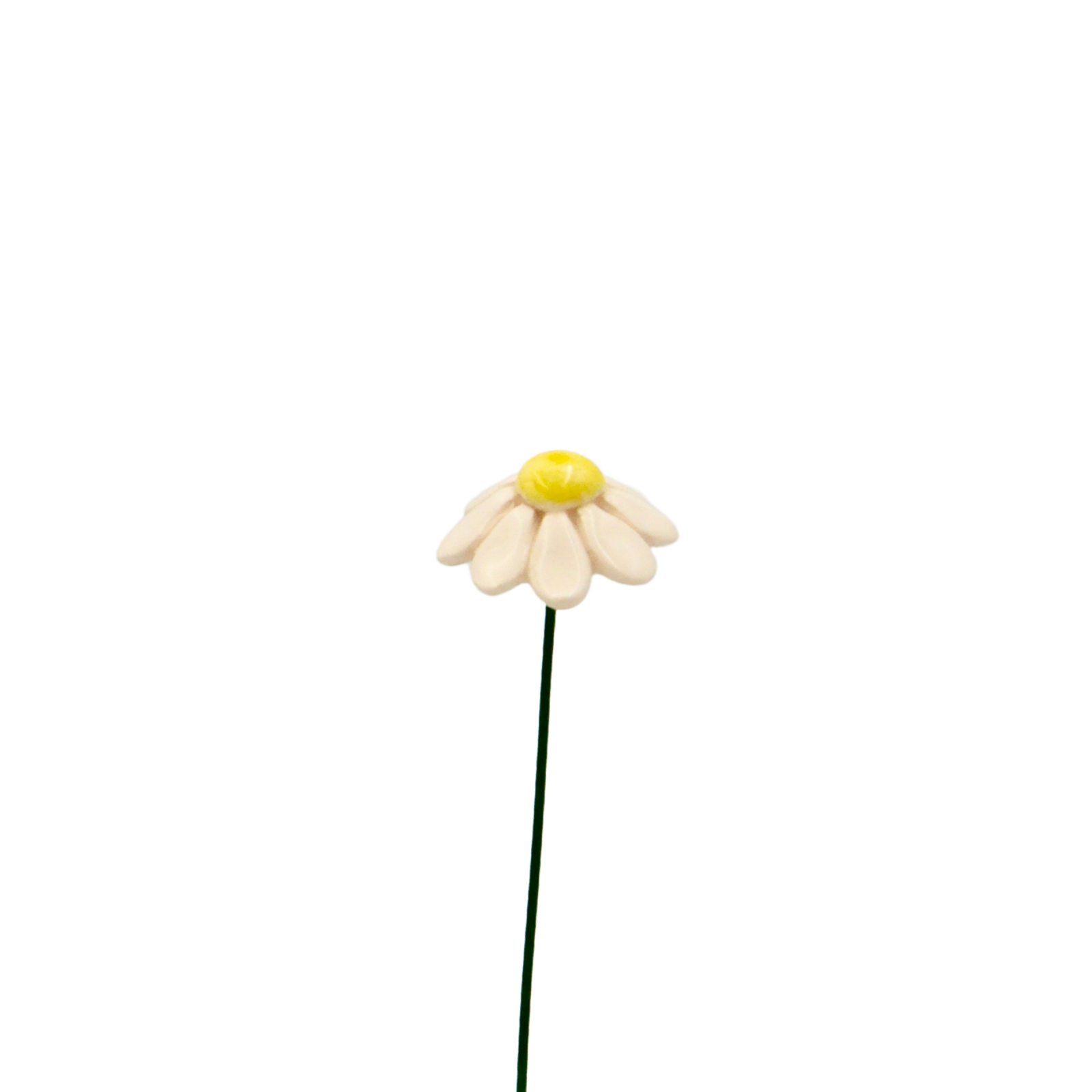 Acesta este Mușețelul nostru format din ceramică și este o operă de artă unică, modelată manual cu atenție, prezentând mici diferențe ce subliniază autenticitatea din această cauză nici un mușețel nu este la fel ca celălalt. Cu culori vibrante, glazură ecologică strălucitoare și un fir metalic flexibil, acest mușețel delicat emite eleganță, dar datorită elementelor ascutite, nu este potrivit pentru copii sub 3 ani.