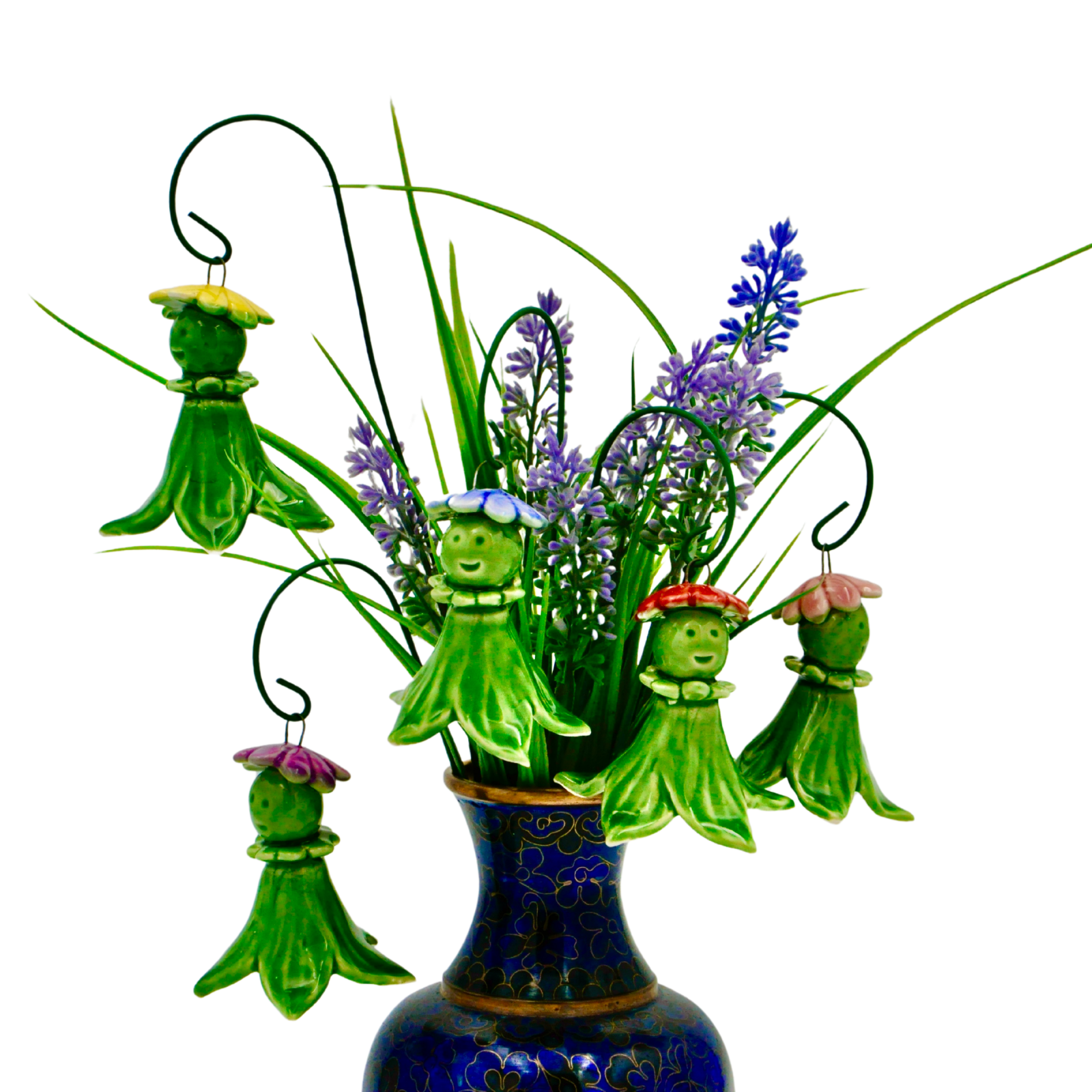 Aceasta este Zâna Florilor a noastră formată din ceramică și este o operă de artă unică, modelată manual cu atenție, prezentând mici diferențe ce subliniază autenticitatea din această cauză nici o floare nu este la fel ca cealaltă. Cu culori vibrante, glazură ecologică strălucitoare și un fir metalic flexibil, această floare delicată emite eleganță, dar datorită elementelor ascutite, nu este potrivită pentru copii sub 3 ani.