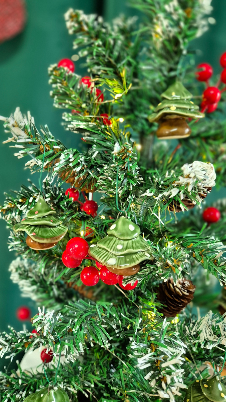 Acesta este bradul nostru format din ceramică și este o operă de artă unică, modelat manual cu atenție, prezentând mici diferențe ce subliniază autenticitatea din această cauză nici un spiriduș nu este la fel ca celalalt. Cu culori vibrante, glazură ecologică strălucitoare și un fir metalic flexibil, aceast brad delicat emite eleganță, dar datorită elementelor ascutite, nu este potrivit pentru copii sub 3 ani.