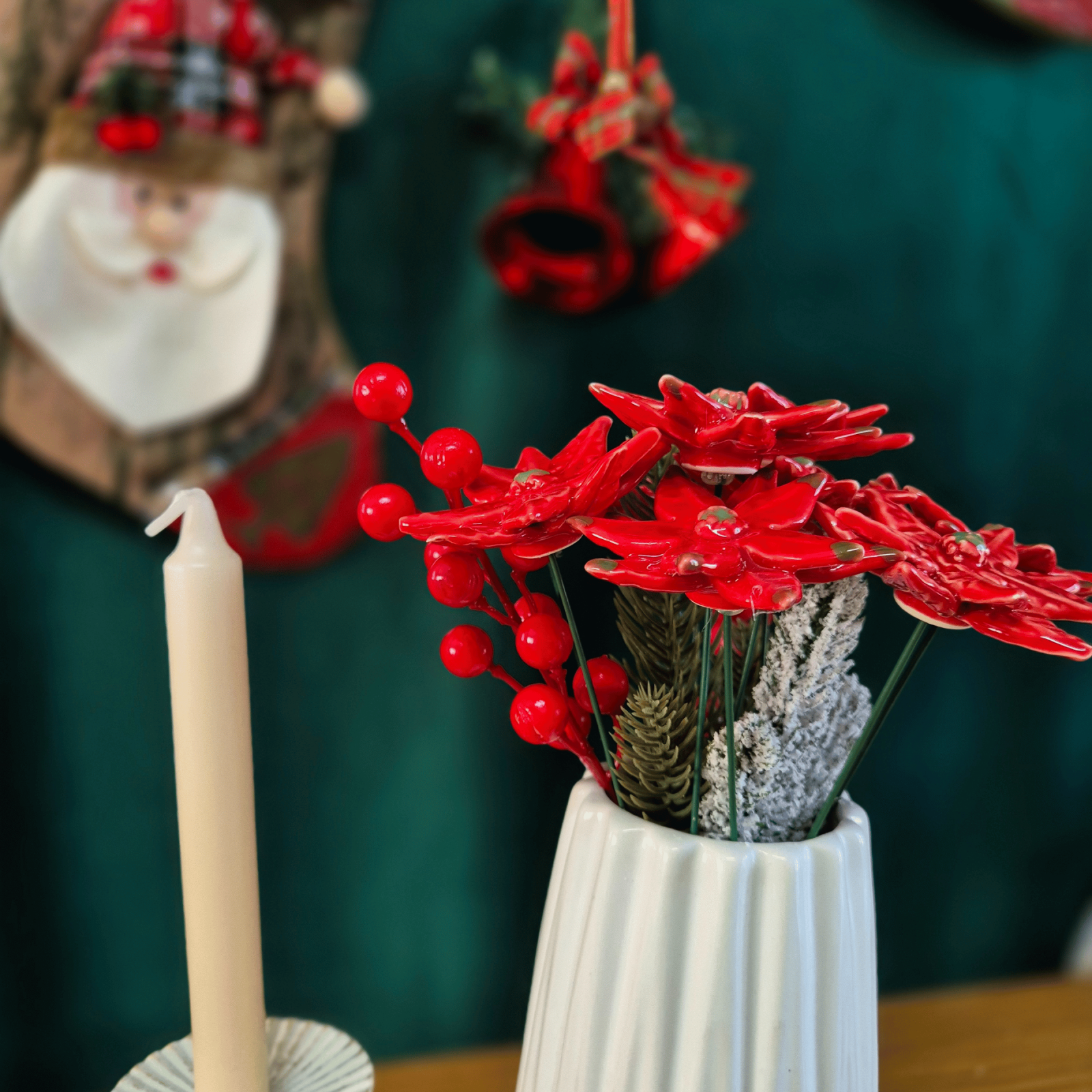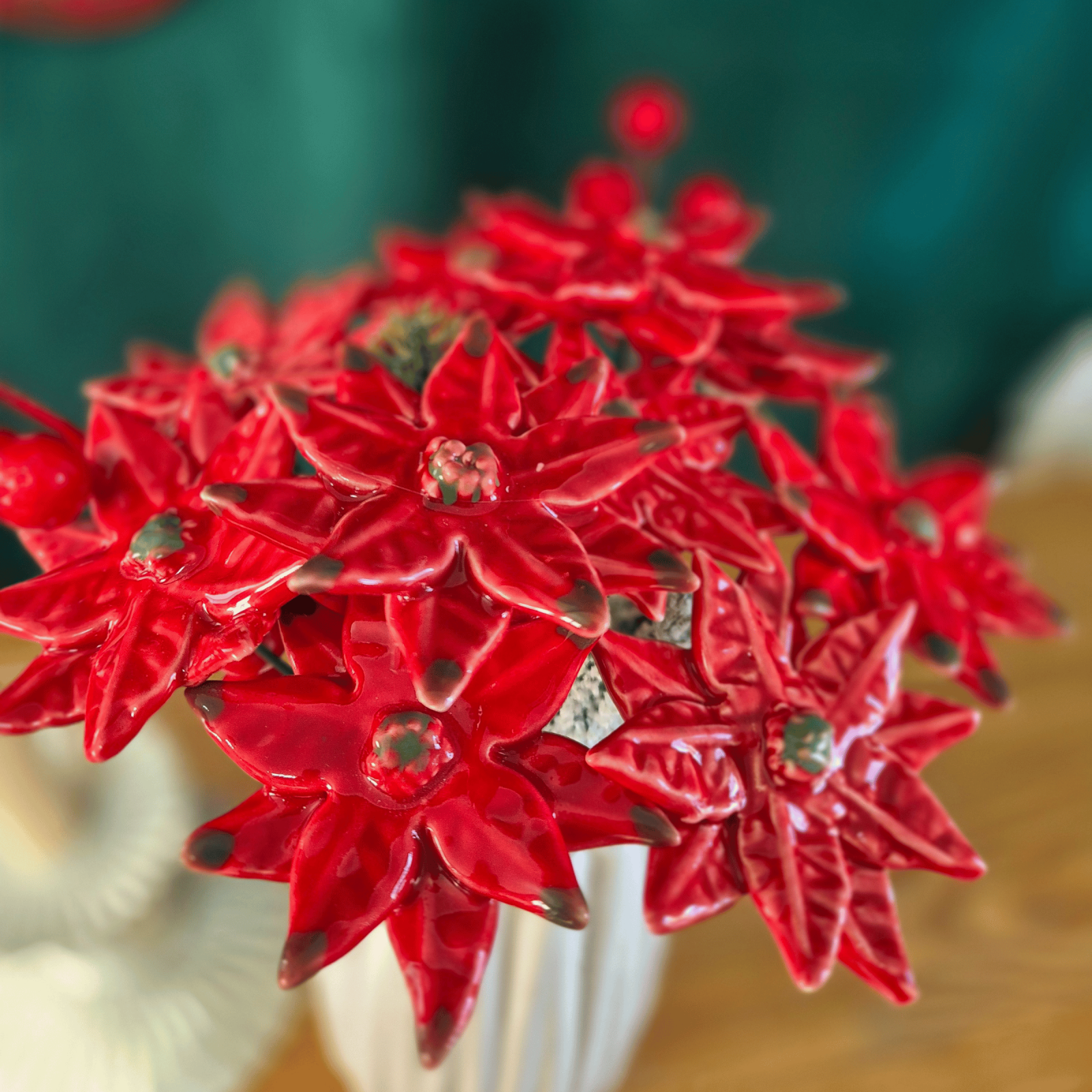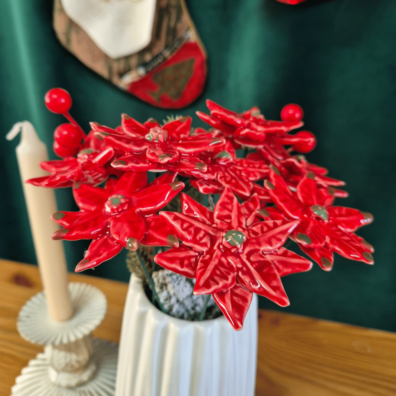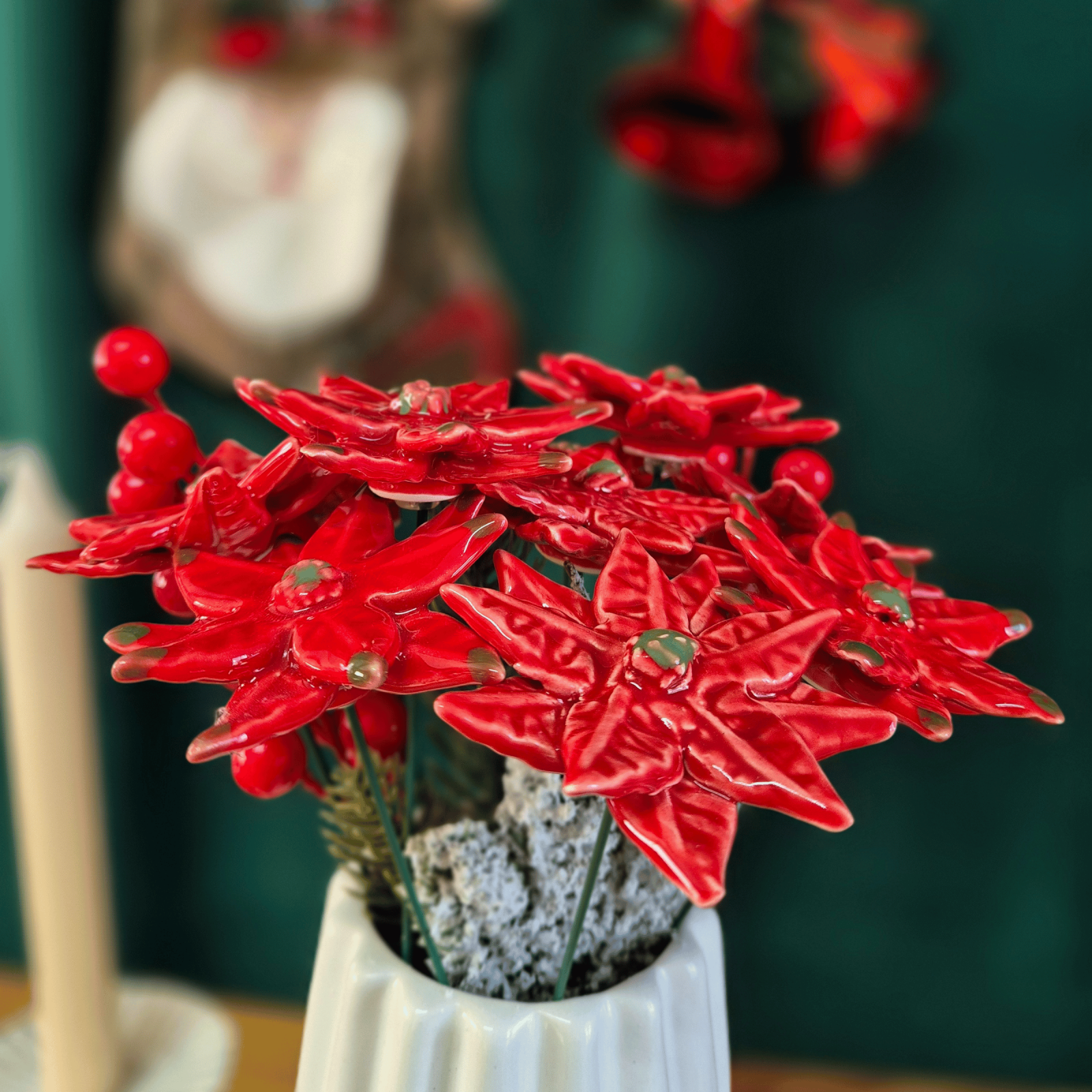 Acesta este crăciunița nostră formată din ceramică și este o operă de artă unică, modelată manual cu atenție, prezentând mici diferențe ce subliniază autenticitatea din această cauză nici un spiriduș nu este la fel ca celalalt. Cu culori vibrante, glazură ecologică strălucitoare și un fir metalic flexibil, această crăciuniță delicată emite eleganță, dar datorită elementelor ascutite, nu este potrivit pentru copii sub 3 ani.